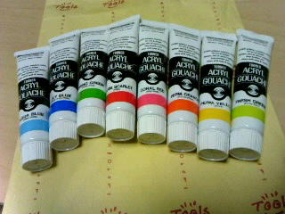 昨日は、机で絵の具の作業をしていたので、