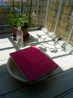 ベランダにて、キャンパスを乾燥中…!